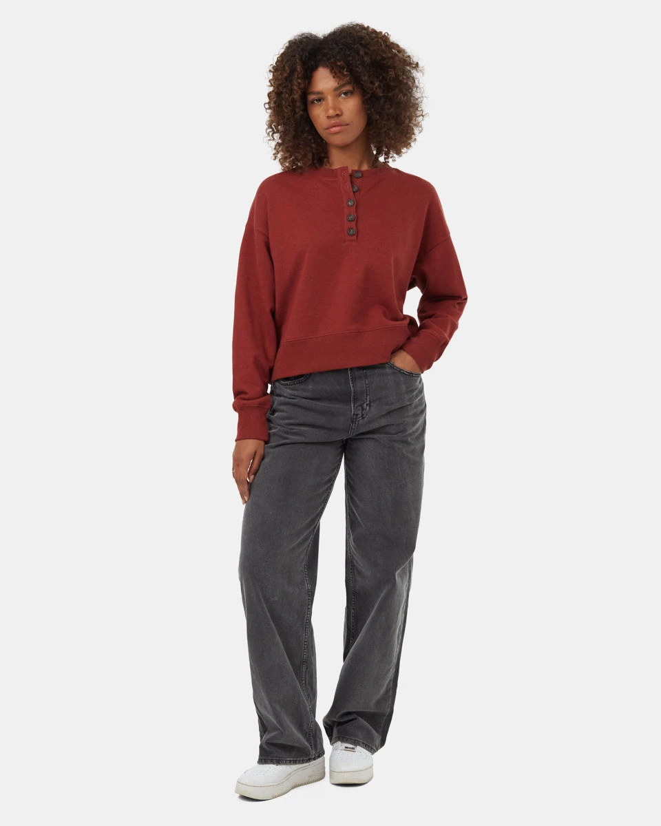 Our latest oversized Henley is made from a blend of Earth-First fibres — like organic cotton, recycled poly and lyocell — that are easy on skin and the planet.